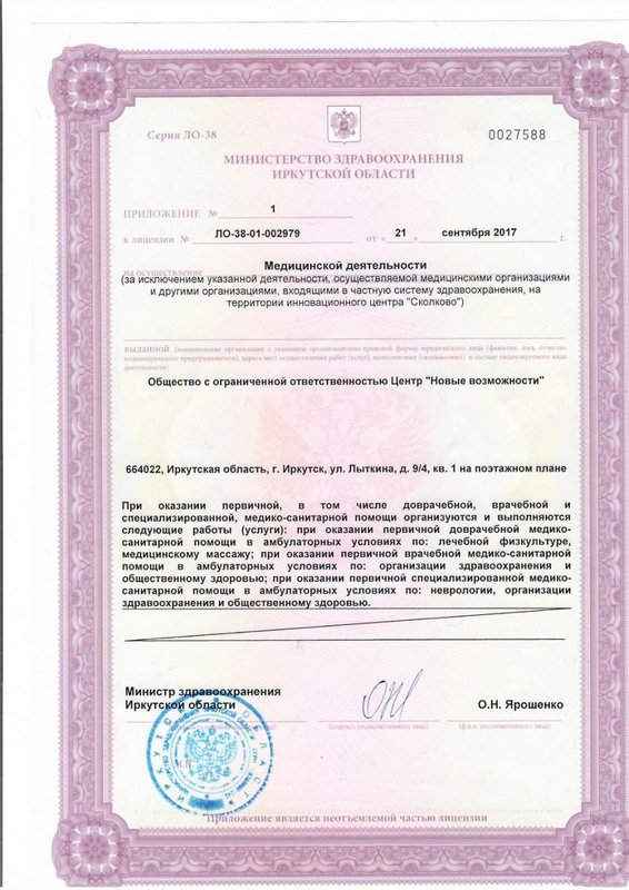 Как эффективно приумножить красоту своего тела? Для клиентов центра неврологии, ортопедии, психиатрии Новые возможности этот вопрос уже перестал быть актуальным. Это не обычный медицинский центр с общим перечнем услуг - здесь стараются к каждому найти индивидуальный подход и составляют программу оздоровления организма, исходя из ваших личных параметров. Используемые нами комплексы процедур соединяют в себе мировой опыт и потому соответствуют самым высоким стандартам. Мы предоставляем шанс записаться на консультативный прием к косметологу на удобное для вас время. После наших процедур вы сразу сможете увидеть результат. Центр неврологии, ортопедии, психиатрии Новые возможности работает для того, чтобы вы были довольны своей внешностью.